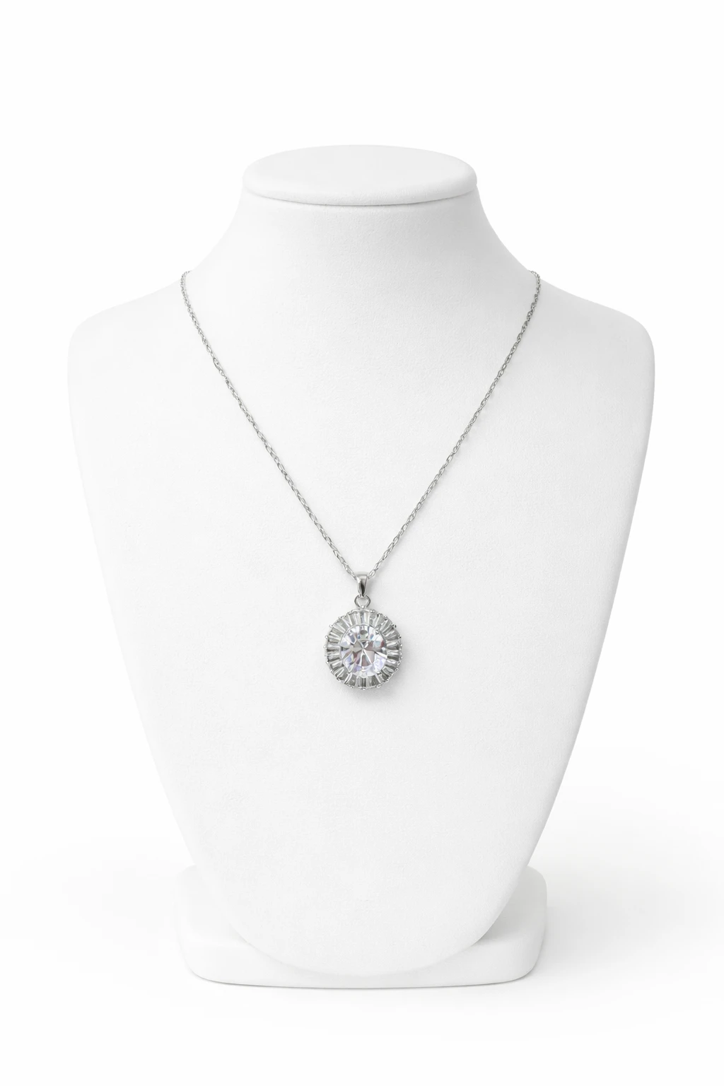 שרשרת כסף אלגנטית בעיצוב על-זמני, עשויה כסף 925 איכותי, עם תליון עגול ומרשים. במרכז התליון משובצת אבן זרקון גדולה בחיתוך עגול, מוקפת מסגרת הילה של אבני זרקון קטן לנצנוץ מושלם מכל זווית. השרשרת משלבת מראה קלאסי-יוקרתי עם נוכחות עדינה, מתאים ליום-יום וגם לאירועים מיוחדים. בחירה מושלמת לאוהבות תכשיטי כסף, שרשראות זרקון, ותליונים בעיצוב נקי ומעודן.